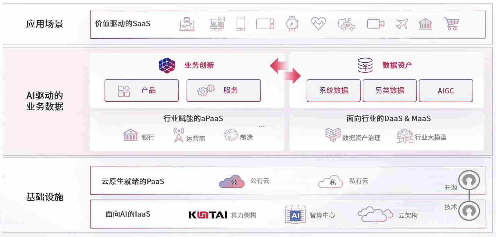 数字时代,,围绕企业数字化转型的关键要素,,,,918博天娱乐数码开创性的提出数云融合战略和技术体系框架,,着力在云原生、、、、数字原生、、、、AI原生和信创产业上架构产品和服务能力,,,为处在不同数字化转型阶段的快消零售、、汽车、、、金融、、、、医疗、、、政企、、、、教育、、、、运营商等行业客户提供泛在的敏捷IT能力和融合的数据驱动能力,,,构建跨界融合创新的数字业务场景和新业务模式,,,,助力企业级客户建立面向未来的核心能力和竞争优势,,,全面推动社会的数字化、、智能化转型升级。。
