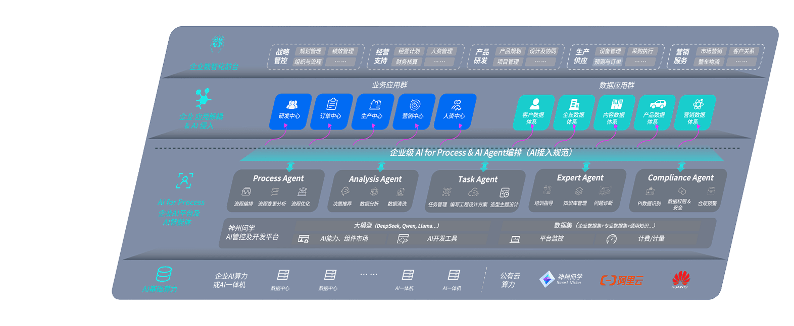 918博天娱乐问学智车解决方案是一套基于AI技术的汽车行业智能化系统,,,覆盖从底层算力到顶层AI应用的全栈方案。。。方案由算力层、、、、模型层和应用层组成:算力层,,,方案支持多种一体机配置,,,具备云端灵活部署、、、、多云适配以及动态优化计算资源的能力;模型层,,,,918博天娱乐问学平台版提供了企业级AI应用一站式构建与管理平台,,,支持基于后训练强化技术的汽车企业专属模型的训练、、、、评测和运营;应用层,,,,918博天娱乐问学DeepSeek版提供包括超级员工、、、智能招采、、智能营销、、、智能客服、、AI for BI等一系列解决方案,,,,可助力汽车行业实现数字化转型,,,,让管理更智能、、、、响应更敏捷。。。。